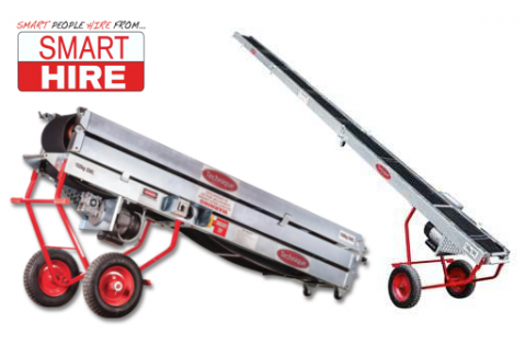 Smart Hire's 9m brick/block elevator is a collapsable conveyor belt used to transport bricks and blocks (or anything that will fit) to a higher el